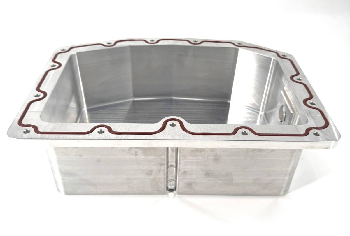 Built from 6061 Billet Aluminum, this oversized pan increases reliability over the plastic factory pan that is prone to cracking and will help keep oil temps cooler, as well it provides a -12 ORB secondary drain port for a compound turbo application. Utilizing a -12 ORB magnetic drain plug. Our Billet Aluminum Oil Pan set's the bar for quality.
